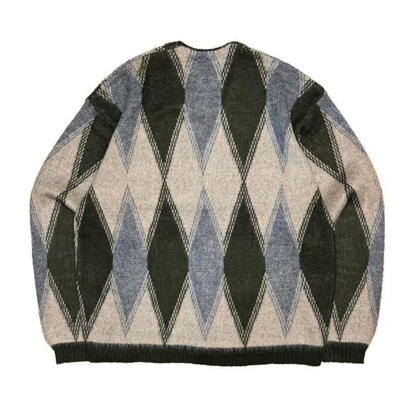 SOLD OUTざっくり着こなせる落ち感のあるオーバーサイズフィットなカーディガン ヴィンテージモチーフのアーガイルテキスタイル柄を再現/TOWNCRAFT(タウンクラフト)