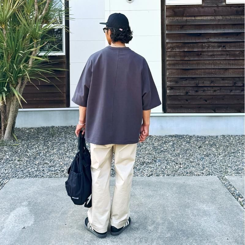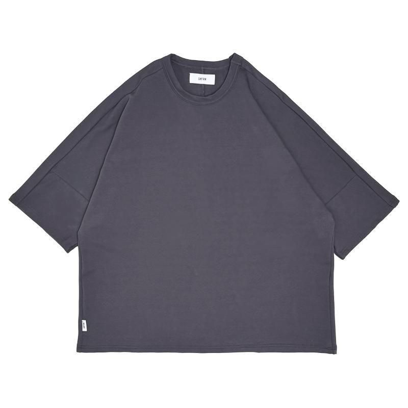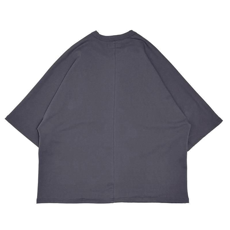 程よい肉厚感と優しい着心地のミニ裏毛で仕上げた5分丈ドルマンスリーブスウェットシャツ。ざっくりと着用出来るワイドシルエットと抜け感のある深い袖ぐりのドルマンスリーブが特長。前身と後身で異なるディテールや同ブランドならではの無骨さと現代感を併せ持ったデザインもポイントです。ストレッチの効いた混紡の吸収速乾素材を使用しているので着心地も抜群。独特なシルエットとドライで快適な着心地を兼ね備えた秀逸な一着です。
