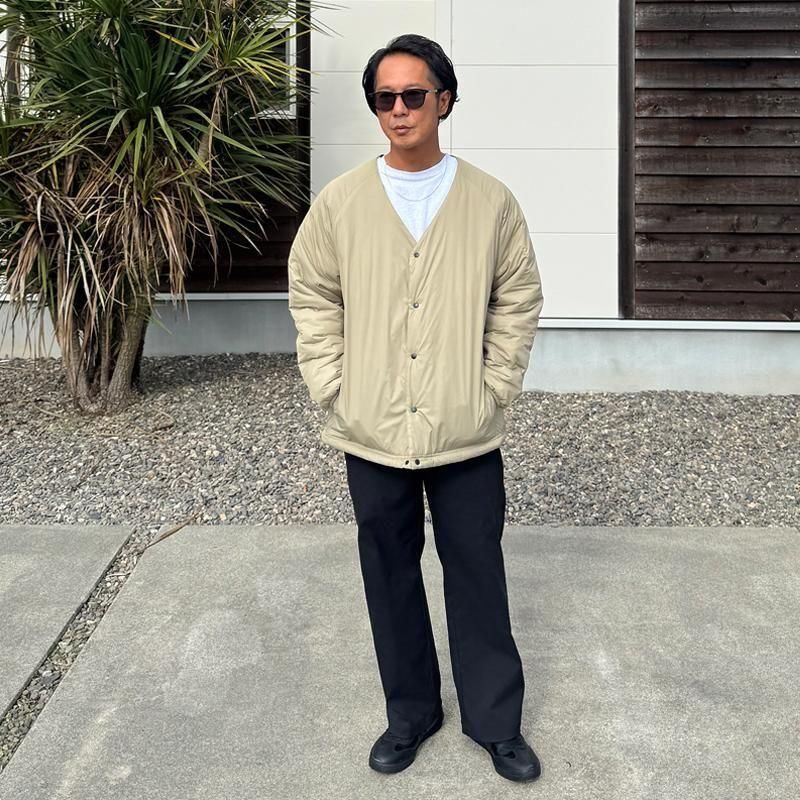 薄手な中綿が入っており暖かさも兼ね備えています。A面B面ともにポケットが付いており機能的にも