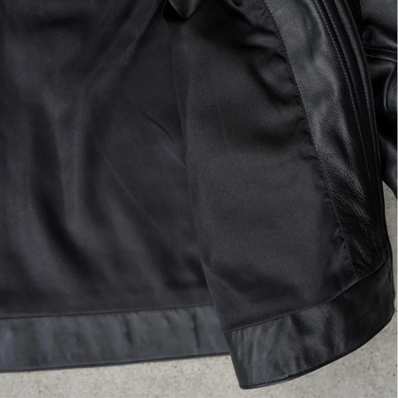 男っぽさを残しつつキメ過ぎずカジュアルにサッと羽織れるサイジングと、モチっとした厚みのあるシープレザー(羊革)を使ったブルゾンタイプのレザージャケットです。