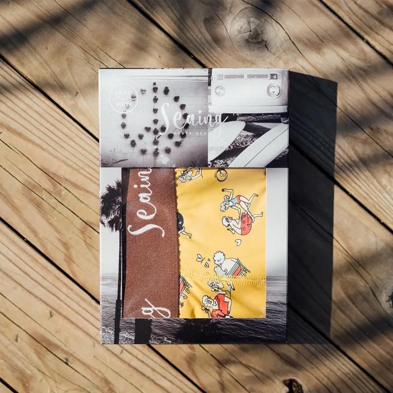 サーフやビーチをテーマとした爽やかなデザイン、ギフトとしても喜ばれるオリジナルのパッケージデザインと、リーズナブルなプライスがお勧めのアンダーウェアです。