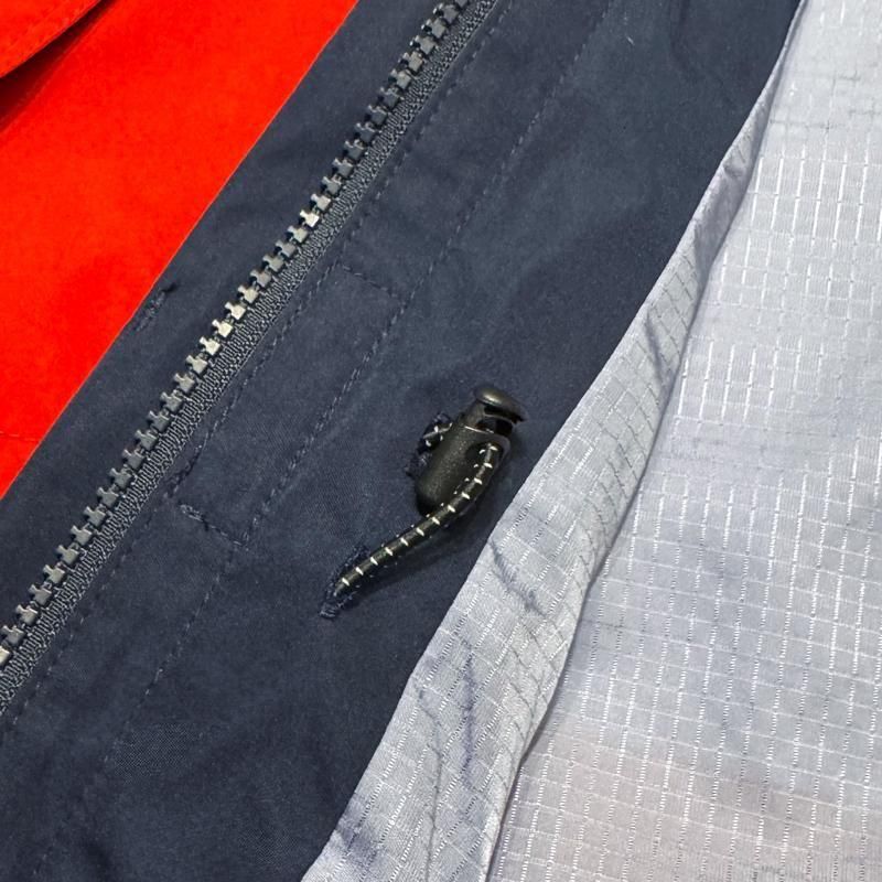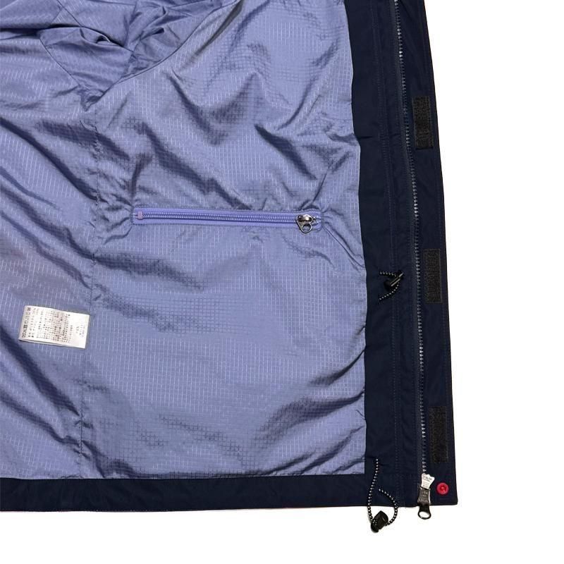 しなやかで滑リが良い裏地ナイロンリップストップ素材を使用しています。肩に極カストレスをかけないよう、 できるだけ並行に取った肩下がりと可動域が広いスプリットヨークのデザイン。リラックスしたポジションを意識した高めに設定したフロントポケットは、ウィンドフラップ付きファスナーポケットを採用しています。ウエストと裾の内側に、二重に配置されたドローコードは風の侵入を防ぐだけでなく、シルエットの調整にも使えます。