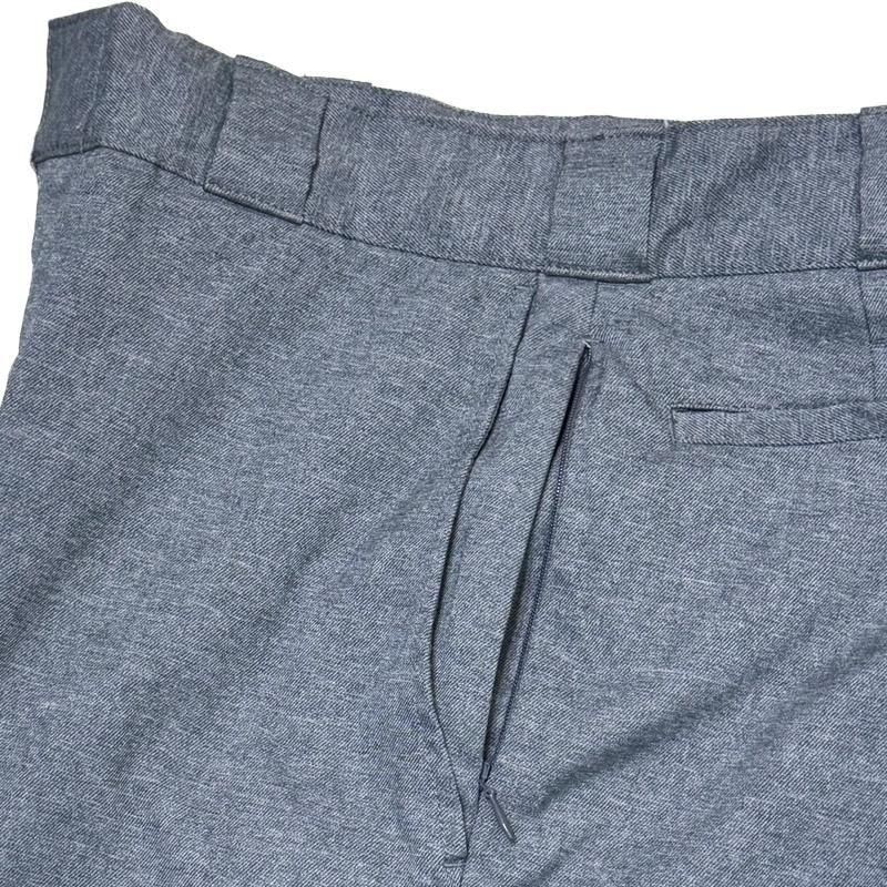 スラックスのようなルックスですが、そこまでキレイめな感じでもいなくワークパンツのようなシルエットで。。。なんとも言えない良いところ取りしたような万能パンツです。ウエスト内側に紐がありウエストサイズの調節もでき、お気に入りのベルトも締められ、なおかつ両サイドには隠しポケット(コインポケット)が配備され合計6個のポケットがあるという収納力にも長けています。
