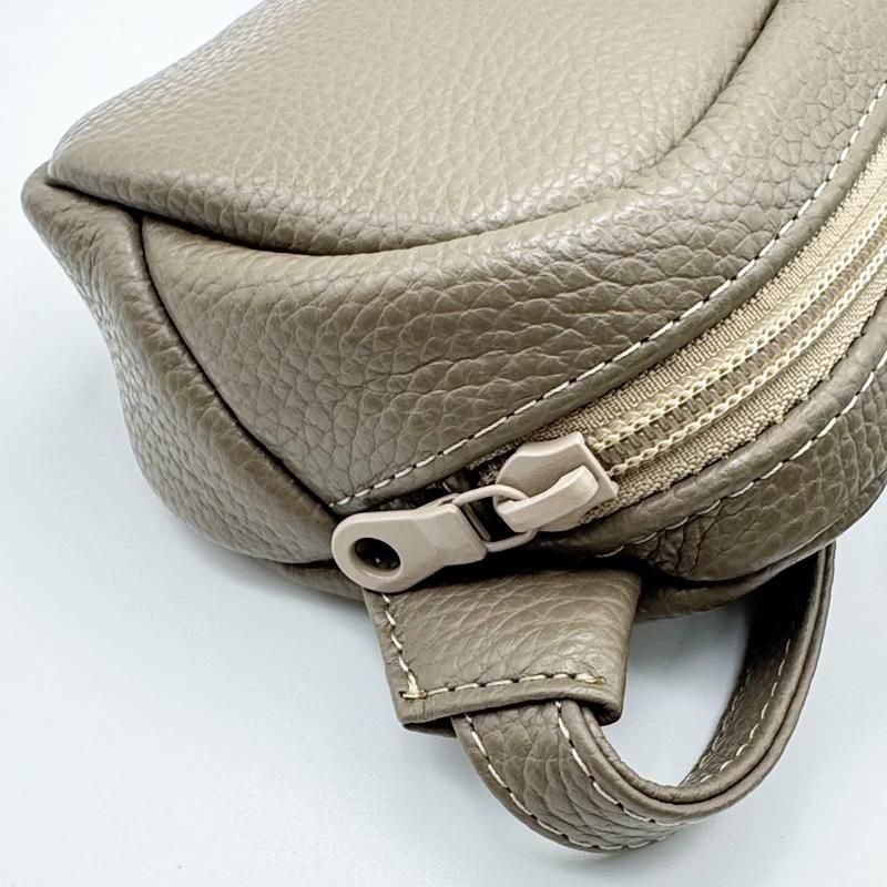 そしてショルダー部分の裏側にも贅沢にシボ革を使い、ミニマルに仕上げる為、