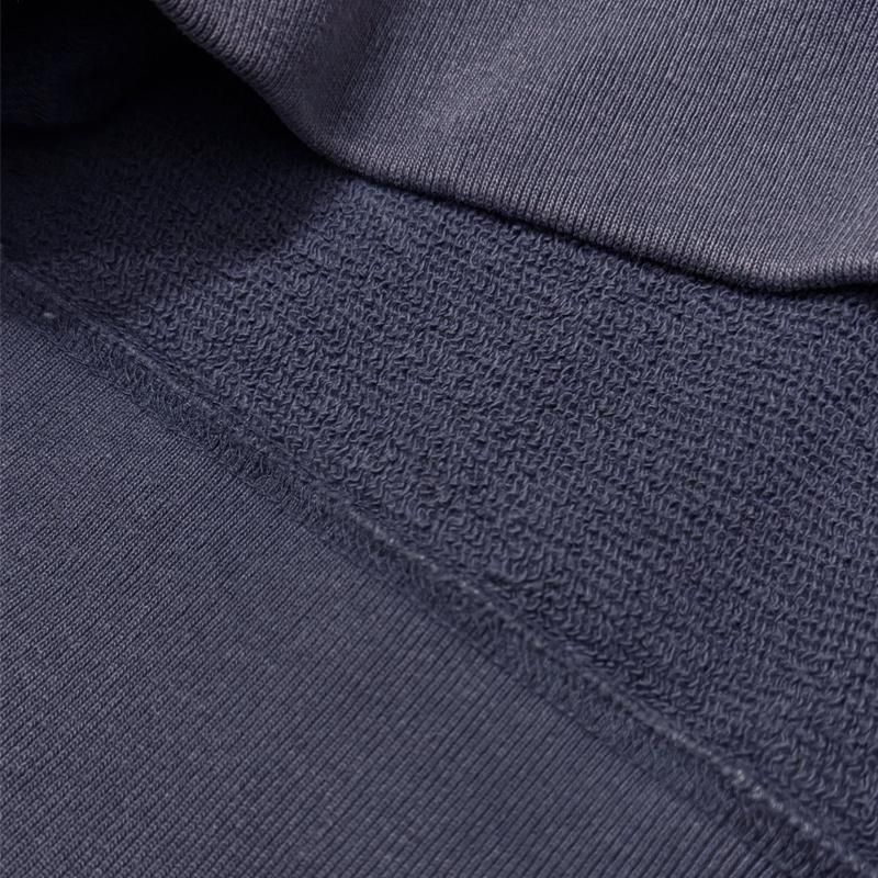 トルコ産のオーガニックコットンと落綿を混紡した空紡糸を使用したドライタッチのヘビー裏毛を使用。