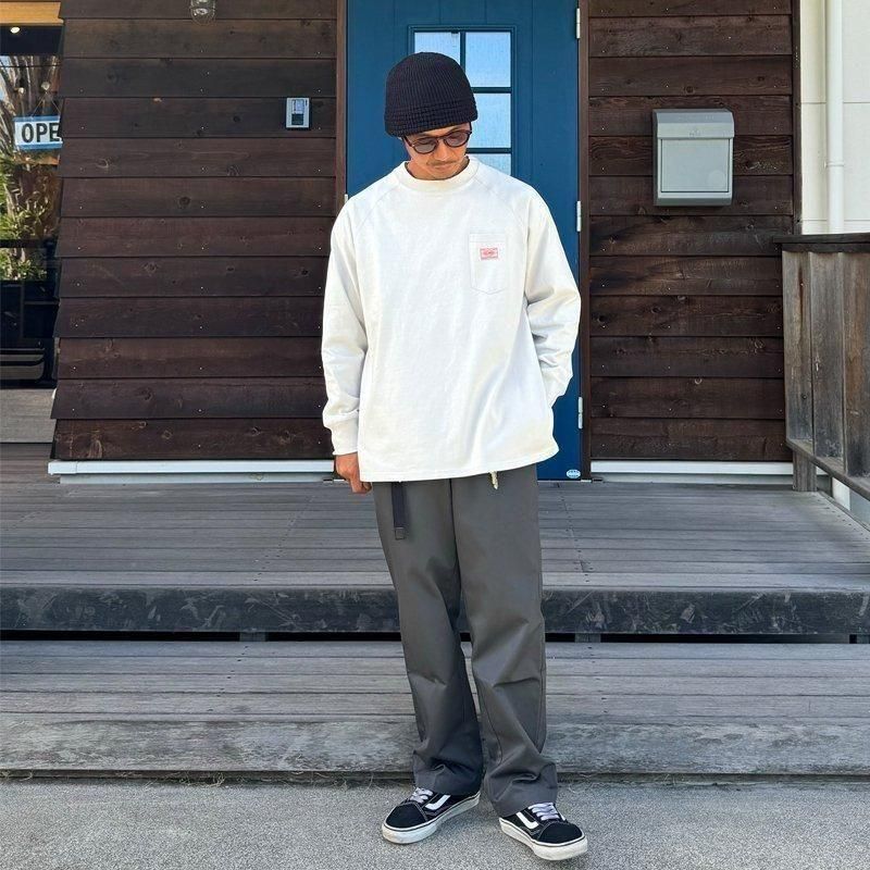 10オンスのしっかりとした生地の厚さに対し、ラグランスリーブでスッキリしたシルエットを演出したロングスリーブTシャツ。