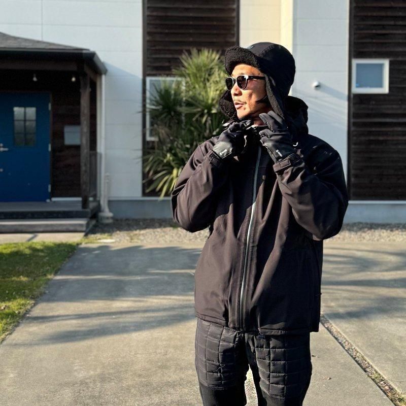 環境負荷の低い原料を使用し、ドライな質感で透湿・速乾・耐摩耗・ストレッチ・撥水・耐久性の機能を併せ持ちます。 あご下でバックルをとめて着用すれば、程良いボリュームのボアフリースを使用した耳当てに顔が包まれ抜群の防寒性を発揮してくれます。